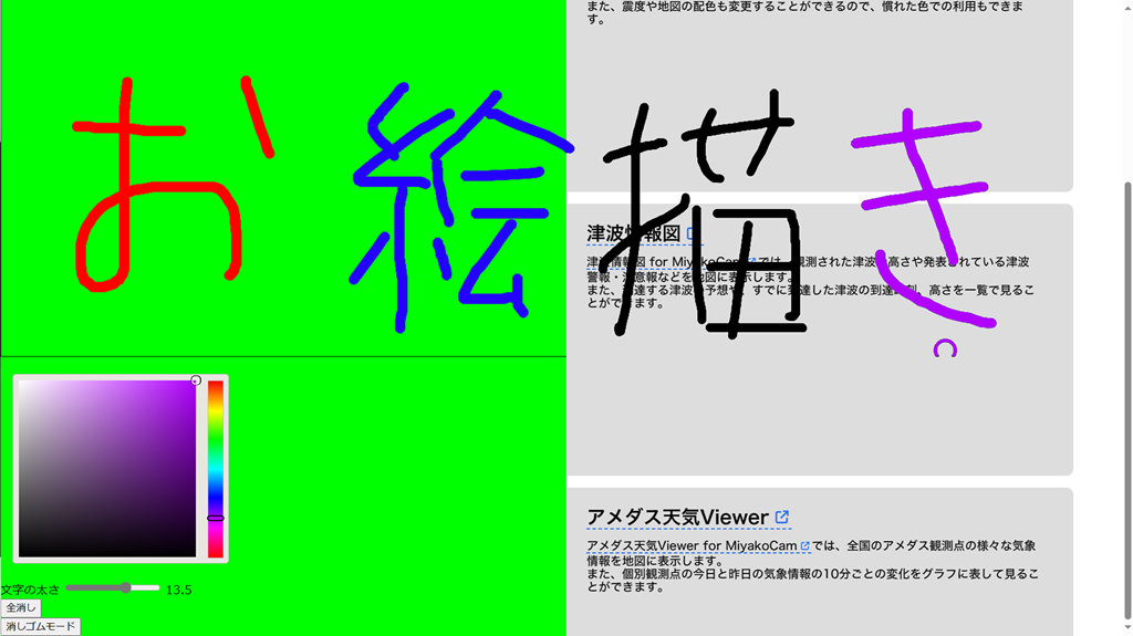 では、全国のアメダス観測点の様々な気象情報を地図に表示します。